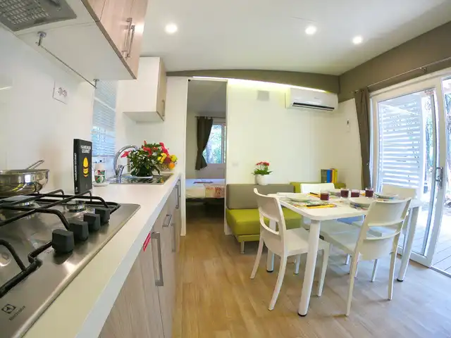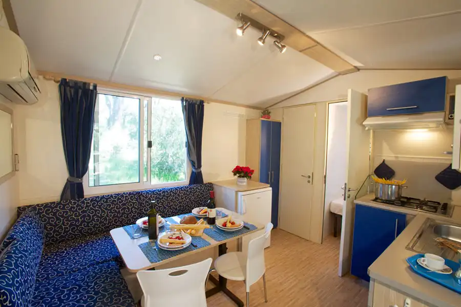 Il campeggio offre numerose soluzioni di soggiorno tra cui piazzole per tende, camper e roulotte, bungalow, case mobili e tende attrezzate. Gli ospiti possono usufruire di un’ampia gamma di servizi pensati per garantire comfort e divertimento durante tutta la vacanza.