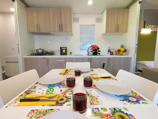 Il campeggio offre numerose soluzioni di soggiorno tra cui piazzole per tende, camper e roulotte, bungalow, case mobili e tende attrezzate. Gli ospiti possono usufruire di un’ampia gamma di servizi pensati per garantire comfort e divertimento durante tutta la vacanza.